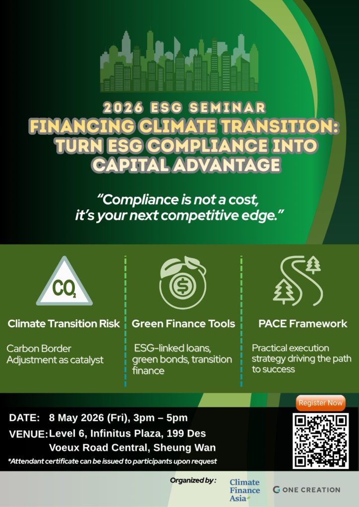 Join us on Friday, 8 May, 2026, from 3:00 PM to 5:00 PM, at Level 6, Infinitus Plaza, 199 Des Voeux Road Central, Sheung Wan, Hong Kong for the ESG Seminar. International experts will share insights and explore the next steps in sustainable development. To RSVP, please register HERE with your name, organisation and email address.
